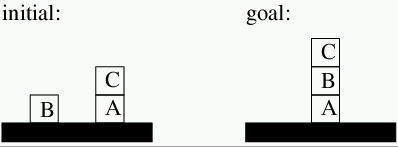 In what follows, we present the basic componentes in specifying a planning problem, on an example from the blocks world. We identify the description of a planning problem as